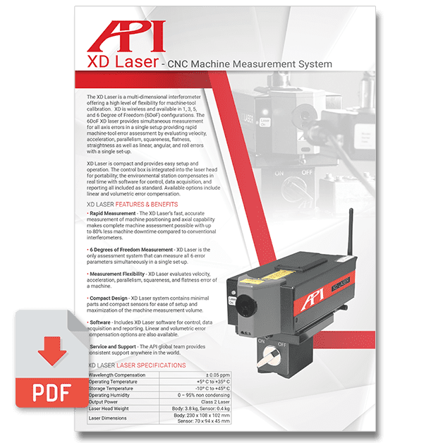 XD Laser is the only assessment system that can measure all error parameters (including squareness) simultaneously in a single set-up, and its fast measurement speeds can reduce machine downtime up to 80%. 6DoF Measurements with a range up to 80m, and XD can communicate its findings directly into the machine tool controller for rapid optimization.